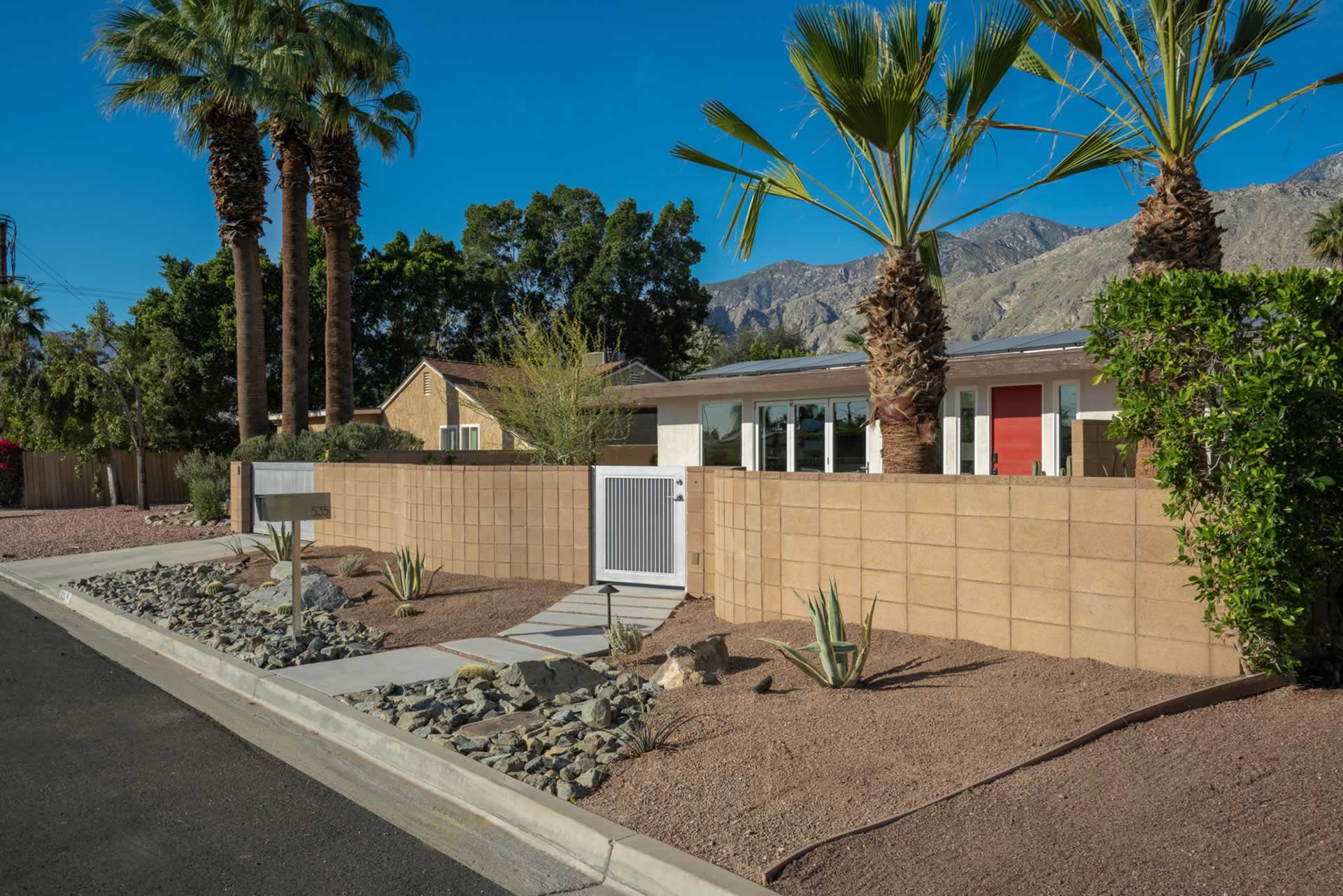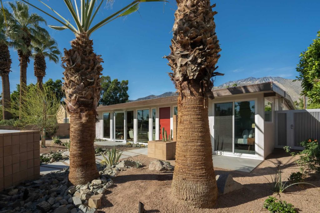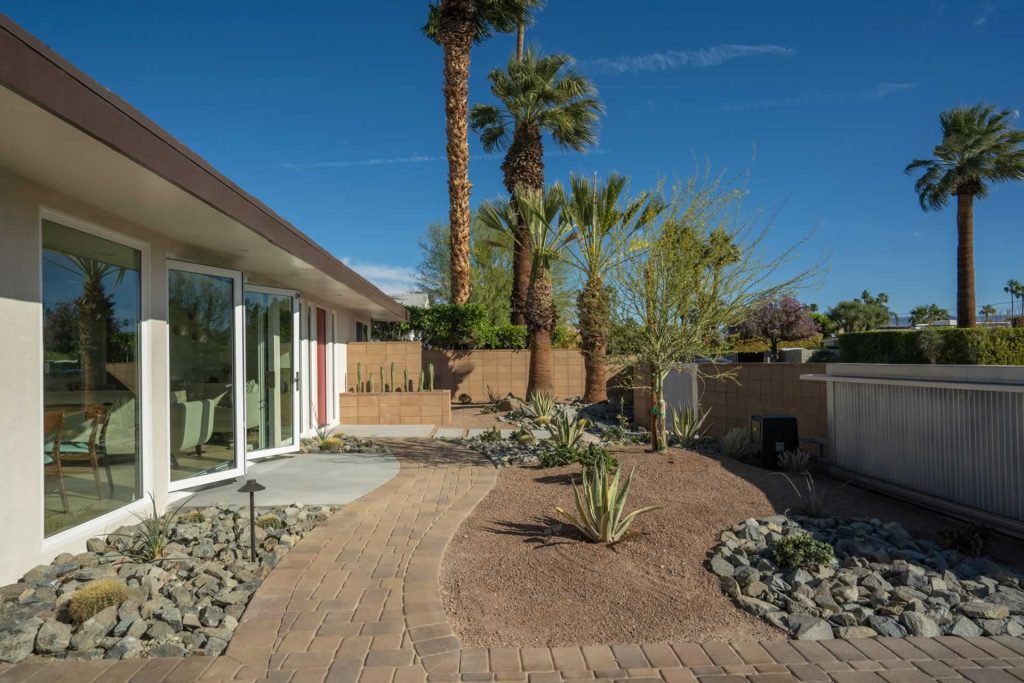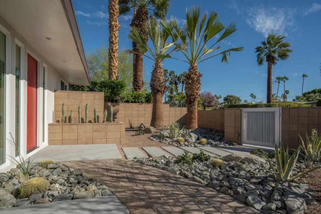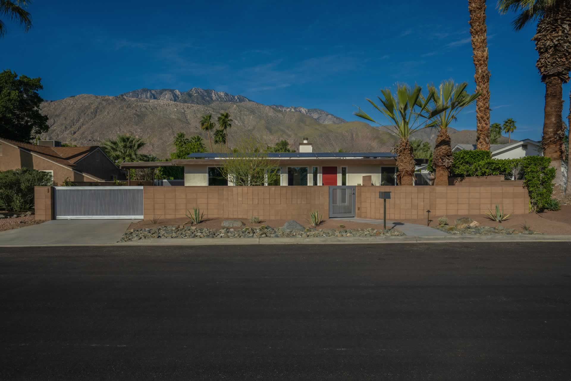 Palm Springs Mid Century Redevelopment Complete front yard, driveway, front of home rethink, redesign and renovation. Architect: Geoff Gregory AIAGregory Architects, Palm DesertÂ