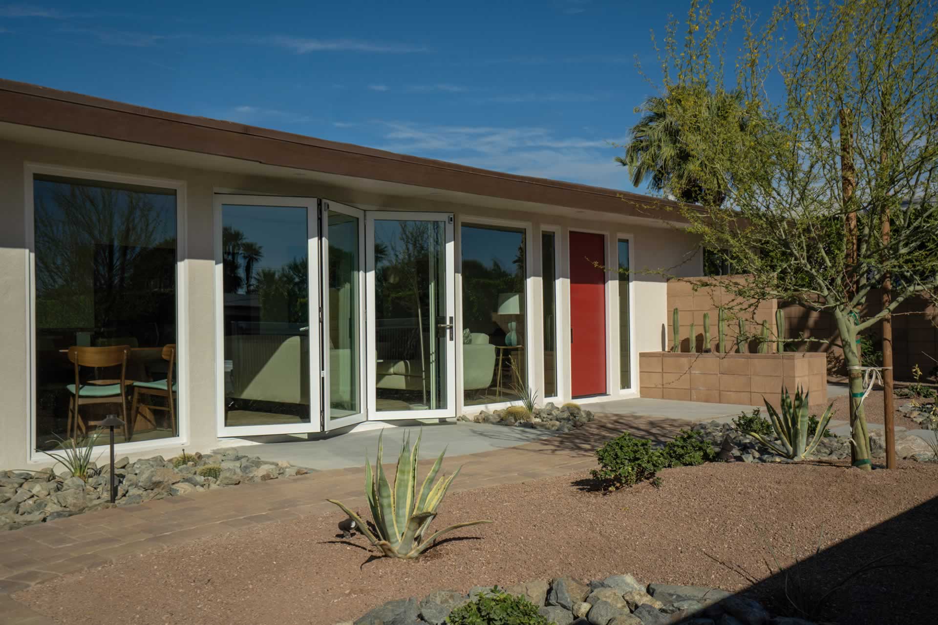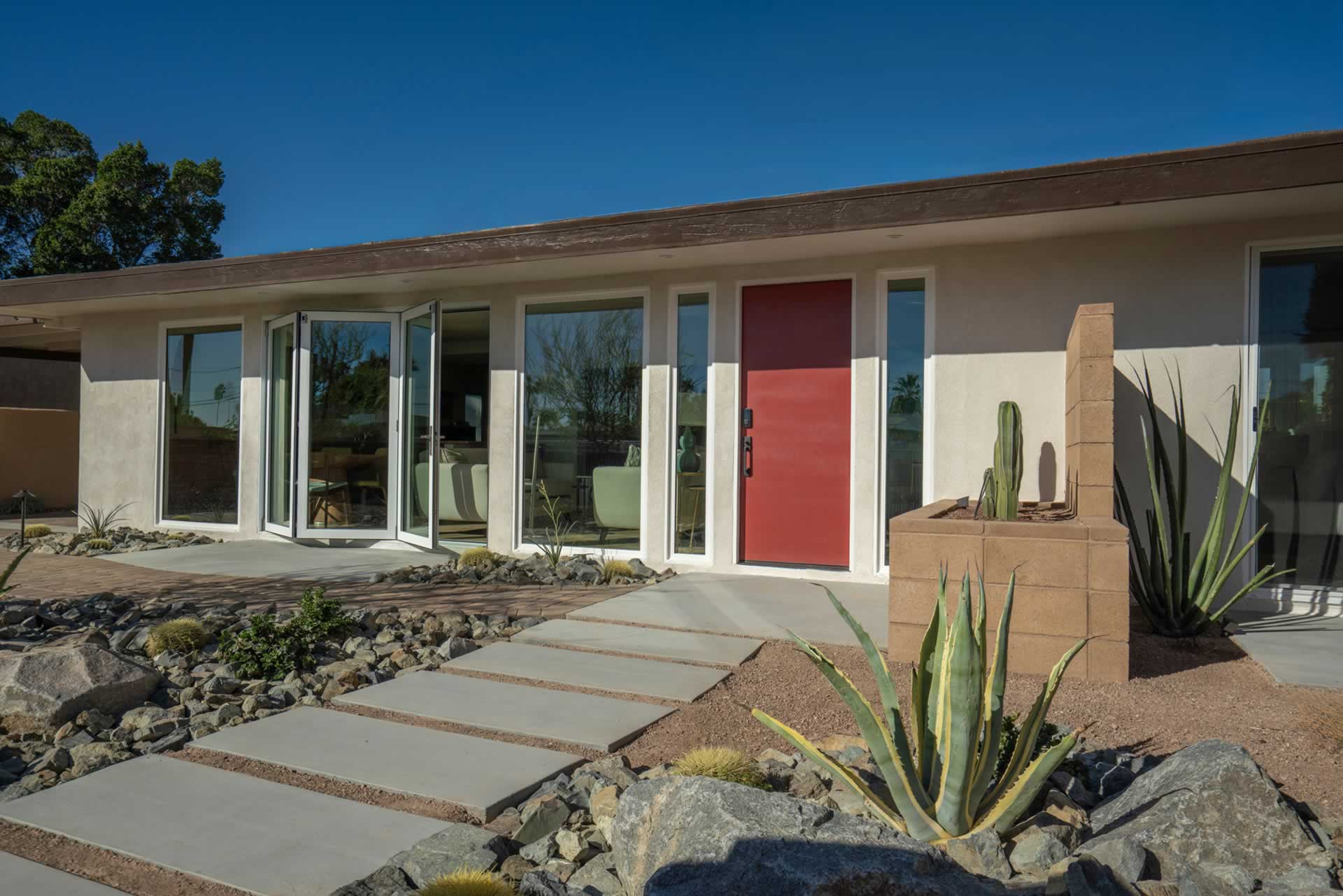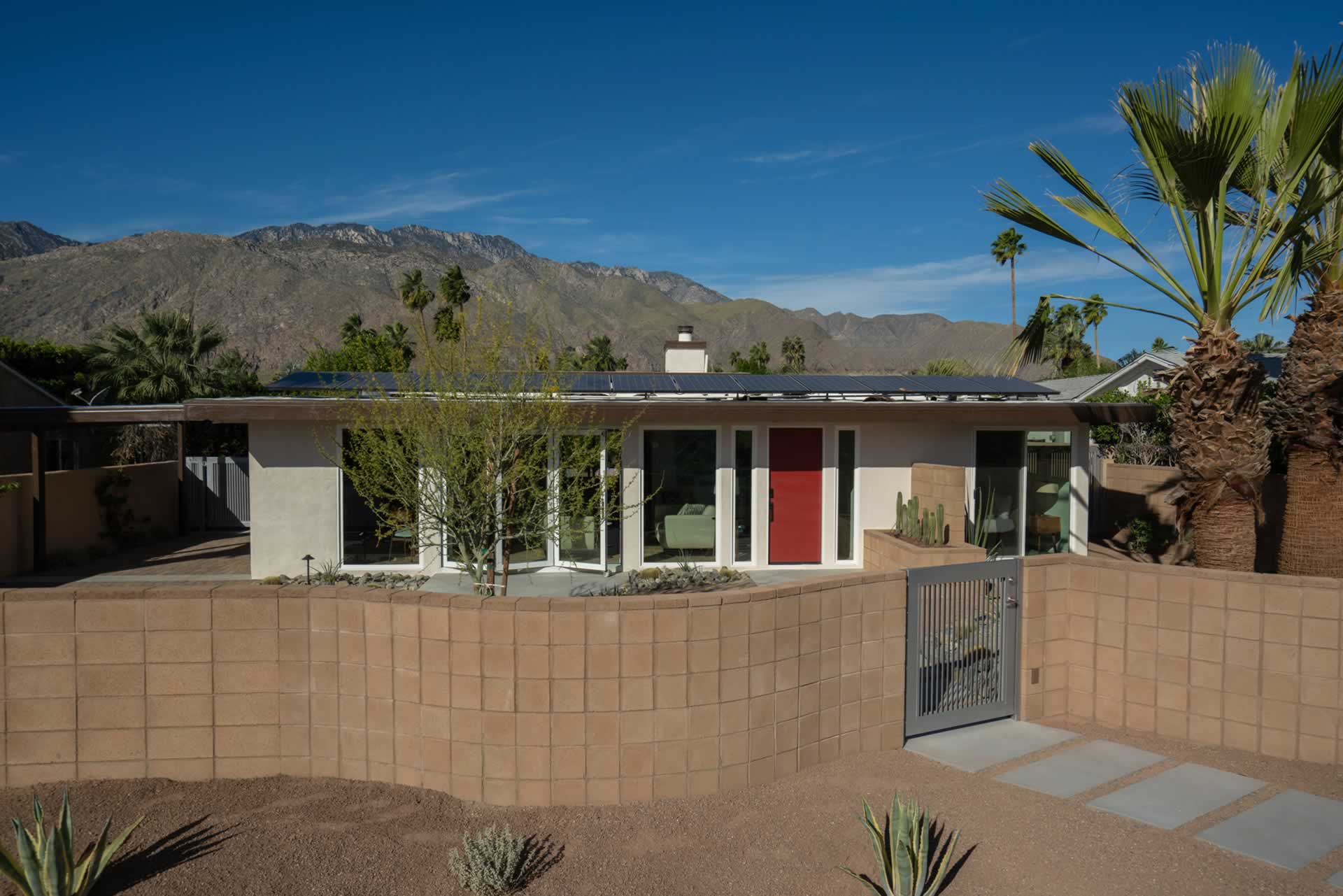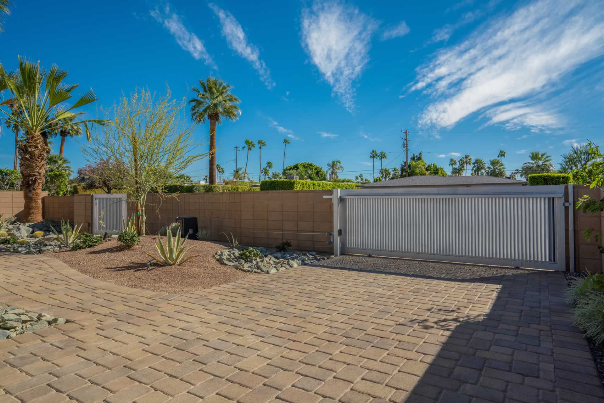 Palm Springs Mid Century Redevelopment Complete front yard, driveway, front of home rethink, redesign and renovation. Architect: Geoff Gregory AIAGregory Architects, Palm DesertÂ